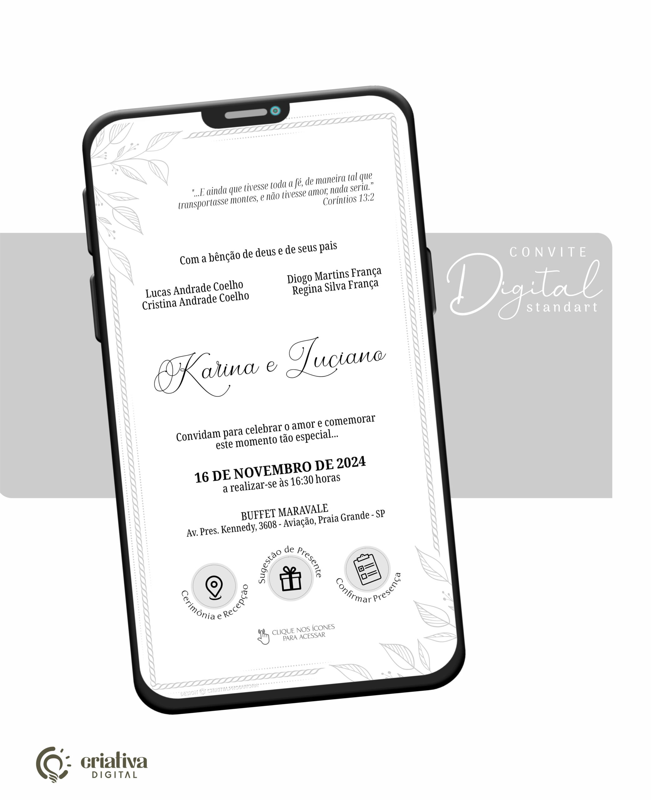 CONVITE CASAMENTO VIRTUAL STANDART É A SUA MELHOR ESCOLHA