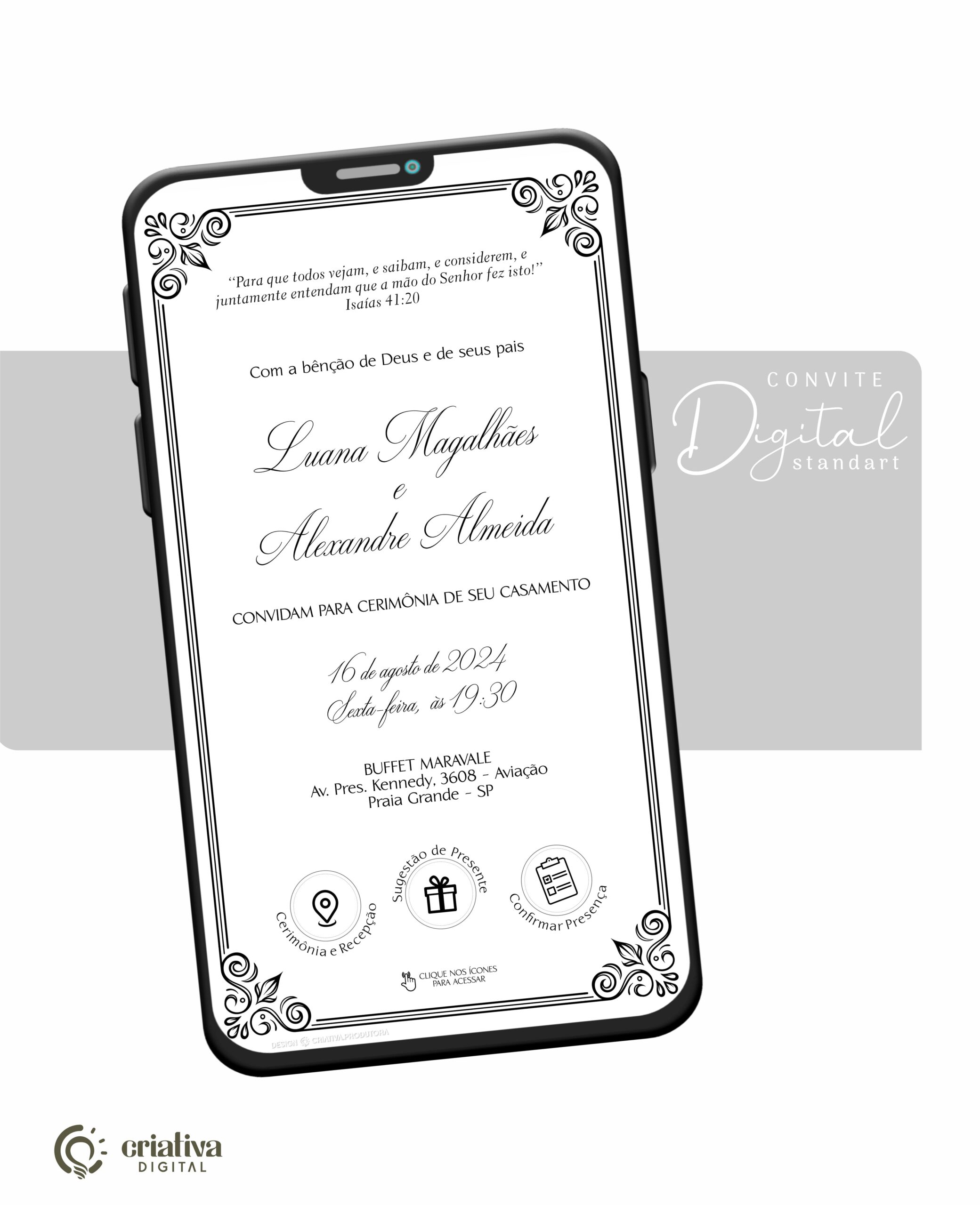 CARACATERÍSTICA DO CONVITE DE CASAMENTO VIRTUAL STANDART: