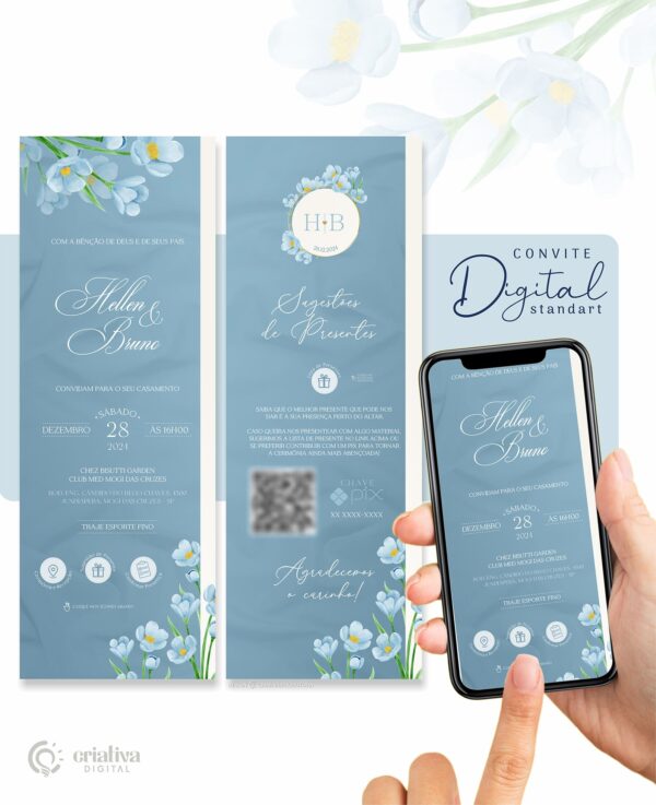 Convite de Casamento Virtual Floral Azul Serenity | Standart cod.290